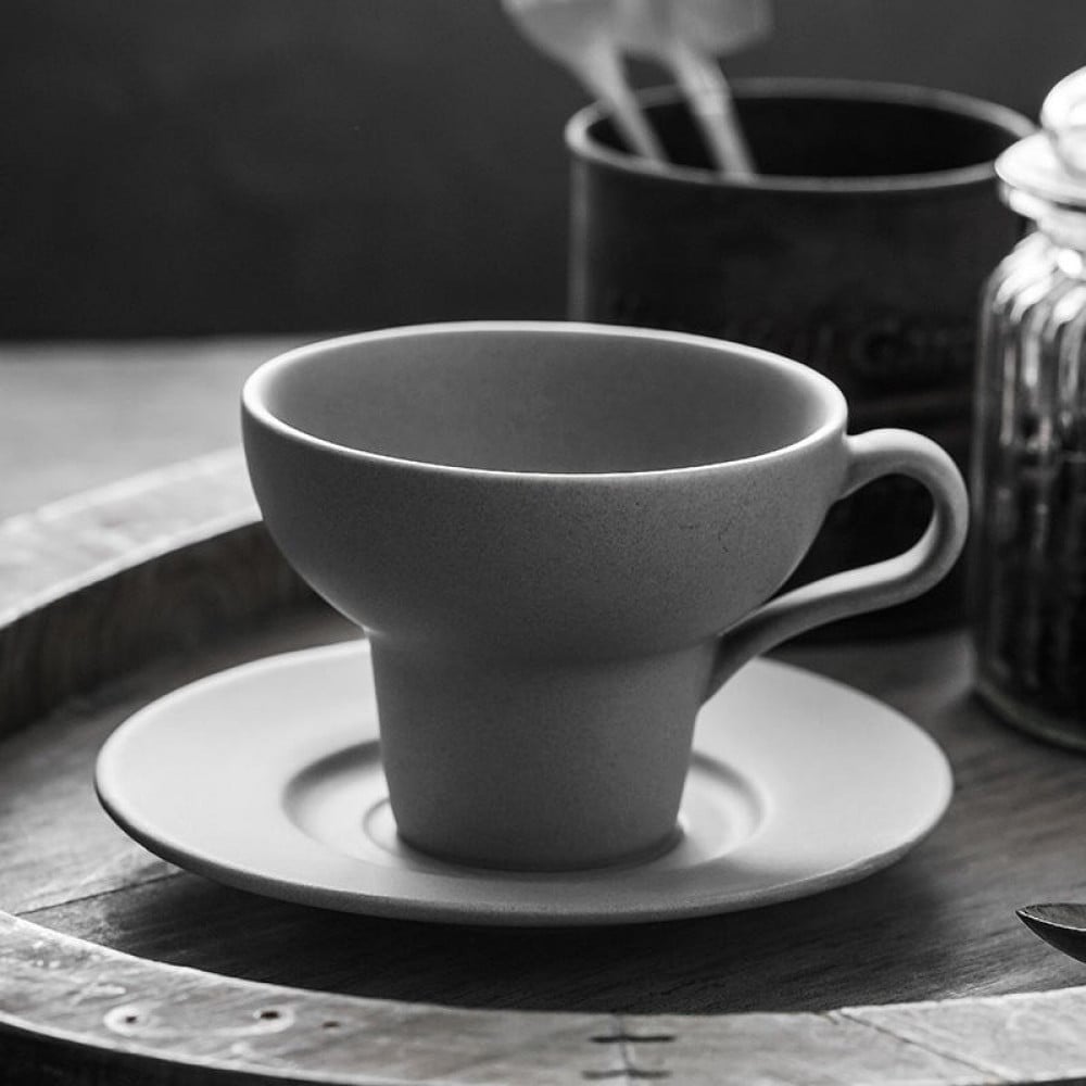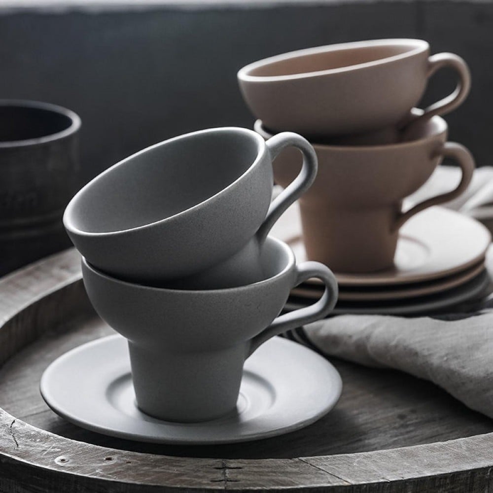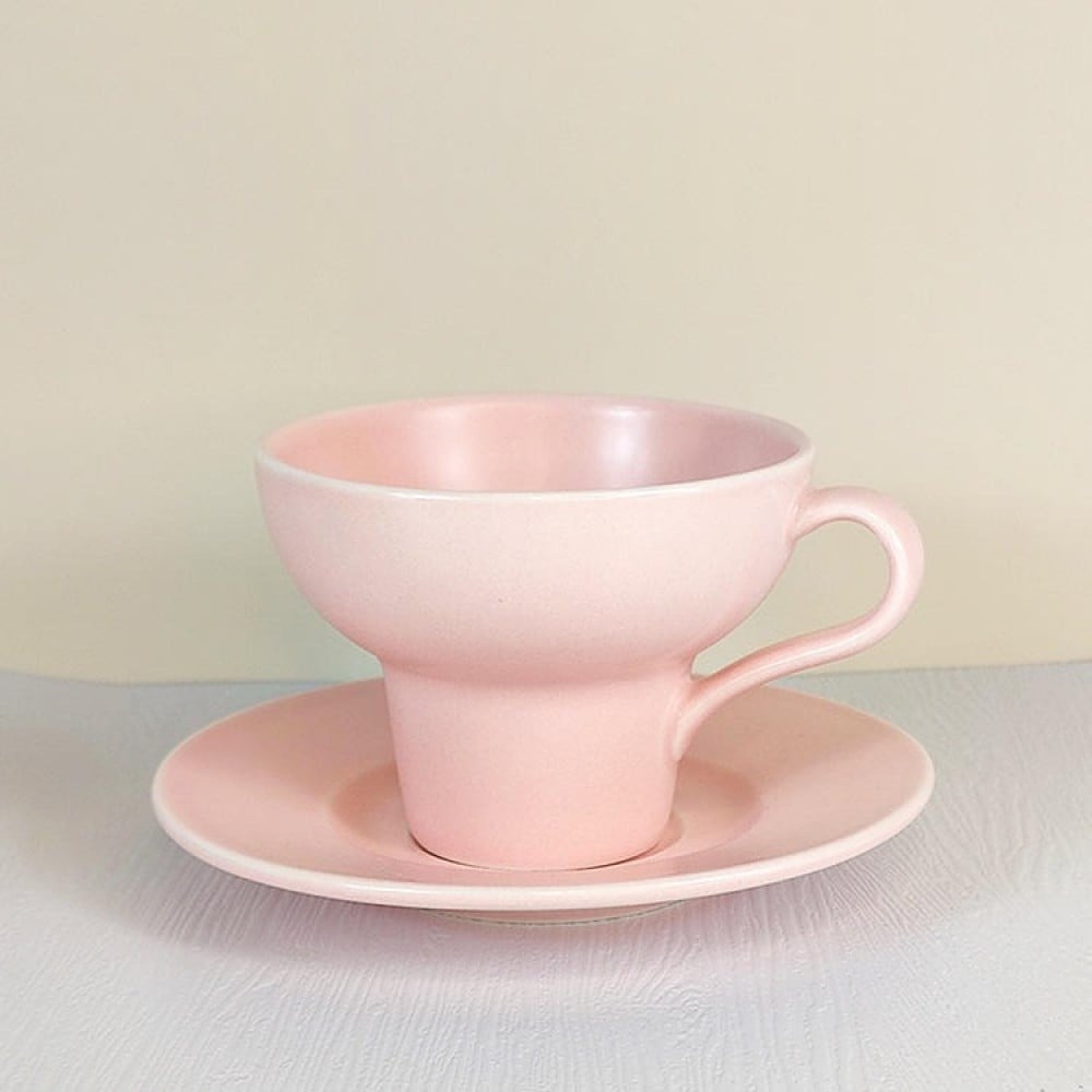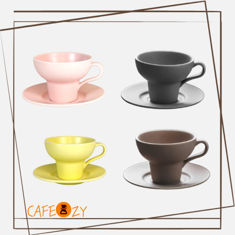 كوب فخار قمعي مع صحن - ألوان متعددة